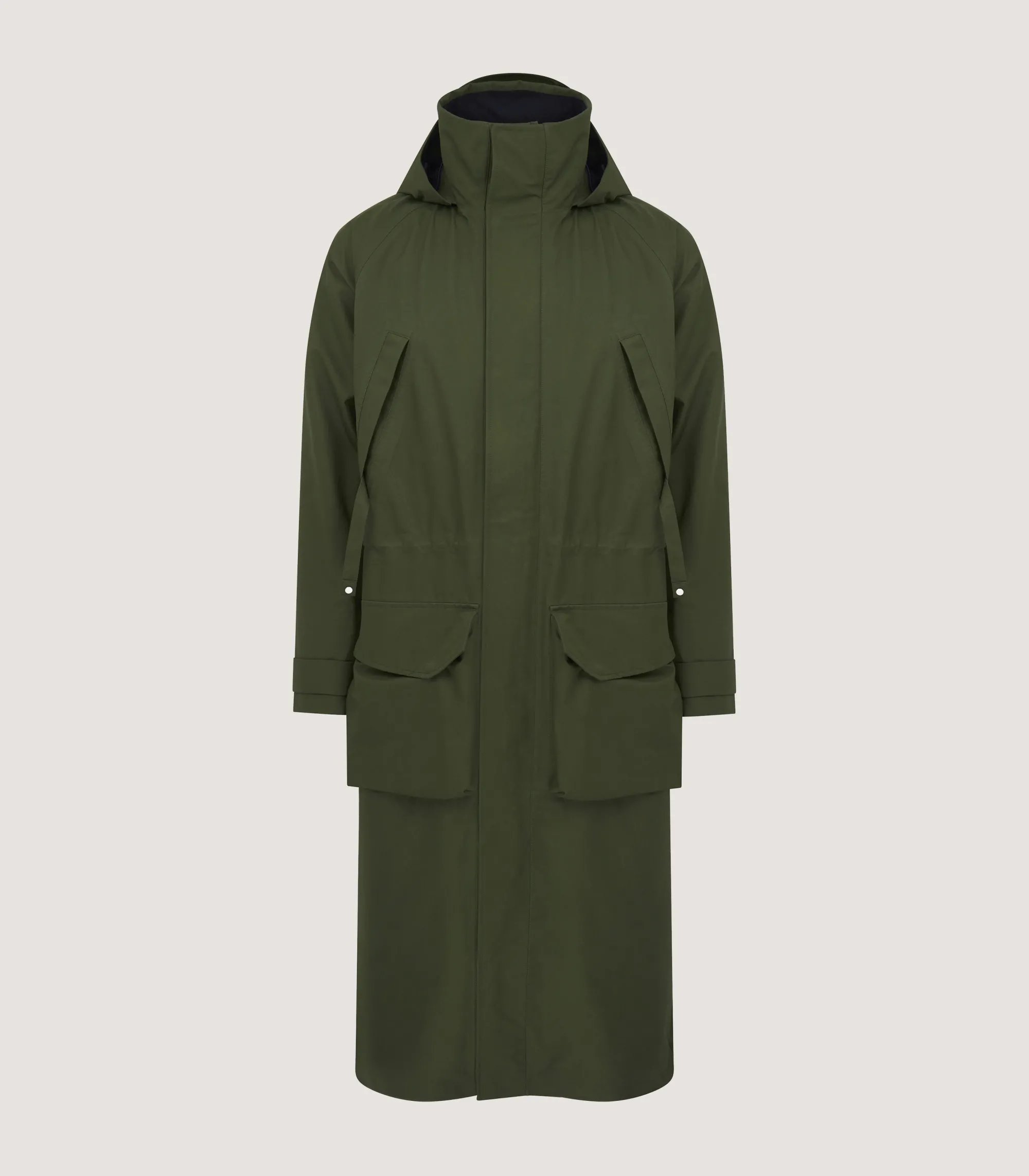 Continuing on from the iconic Vatersay cape comes a significantly upgraded version. This unisex sporting cape was made to withstand even the wettest of conditions. It’s a high-functioning kitbag essential for the serious sporter and novice alike. Every element of this sporting cape has been constructed with your performance in mind. There are three weather-proof layers, a detachable hood that can be packed away and double storm flaps. For added comfort and wearability in tough weather, we’ve added fleece-lined hand warmer pockets as well as made it full length so it sits over the top of a wellington. There are two-way zips so that the cape has convenient access to your trousers beneath. Its design features include a two-way centre front zip, an internal chest pocket, adjustable velcro cuffs, external cartridge pockets with retainer straps on both sides and a cinched waist to give it a flattering shape. The unisex Vatersay sporting cape is available in sizes XXS to XXXXL.