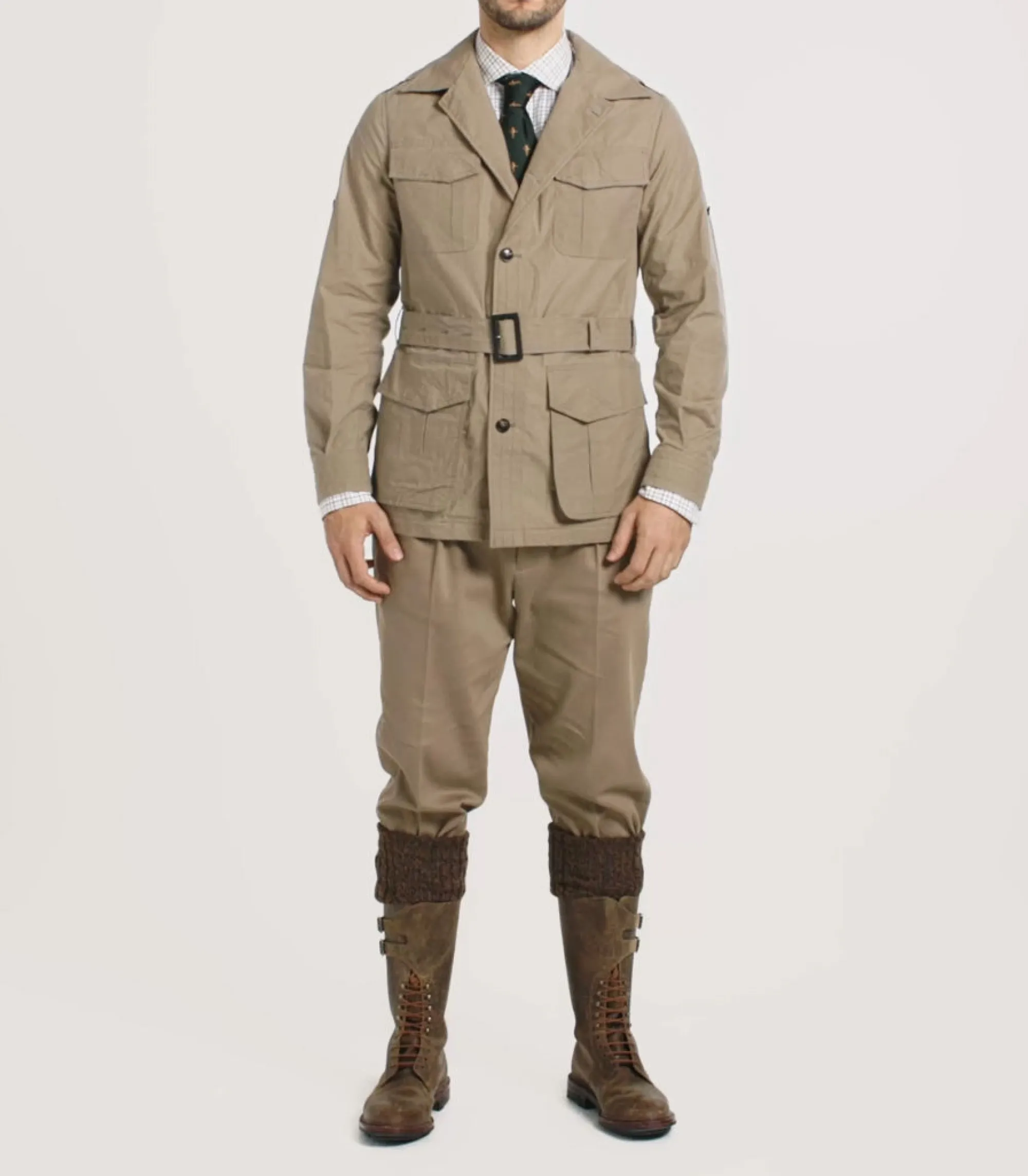 . Traditional four-pocket safari jacket
