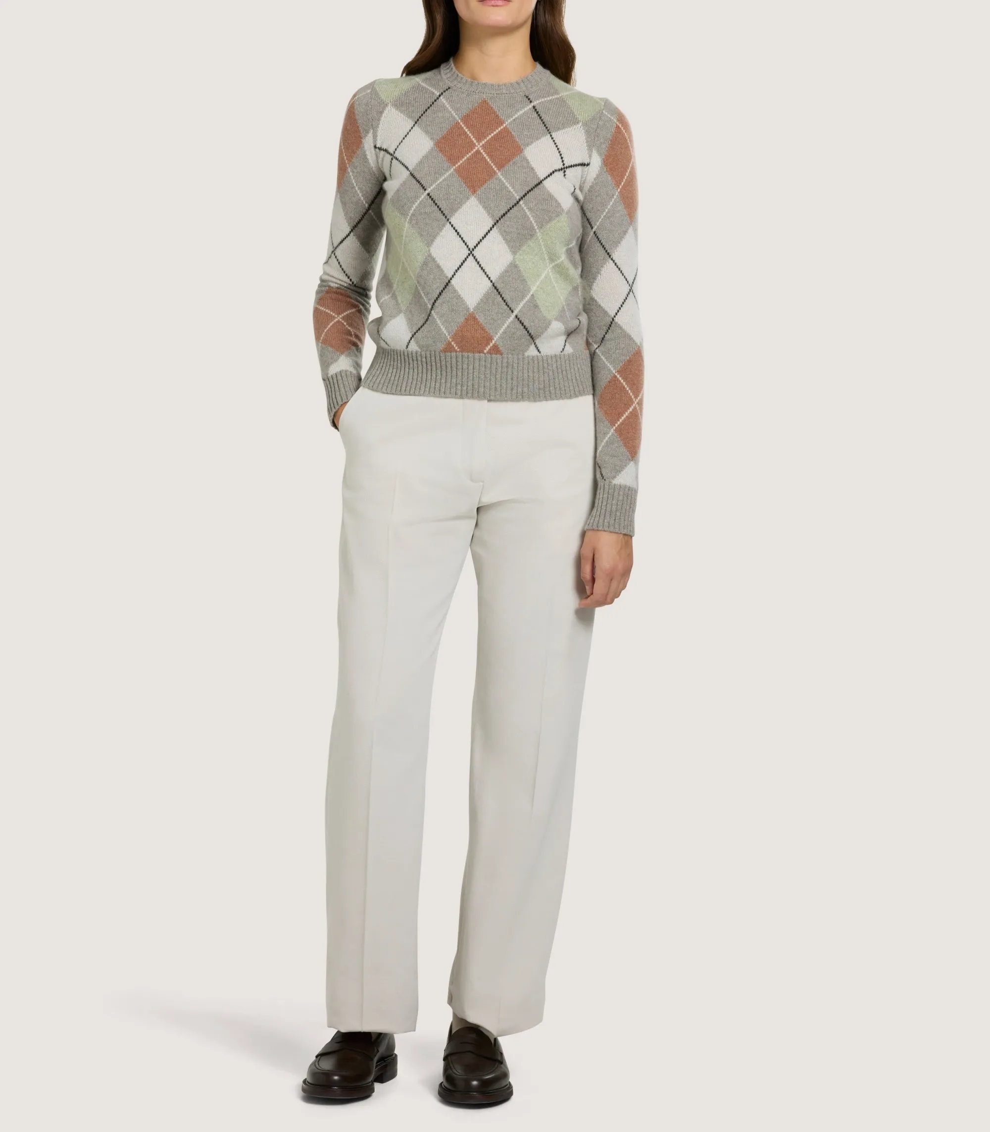 Be the first to review “Knitwear|Purdey Women’s Cashmere Argyle Crew Neck Sweater in Flint” Cancel reply