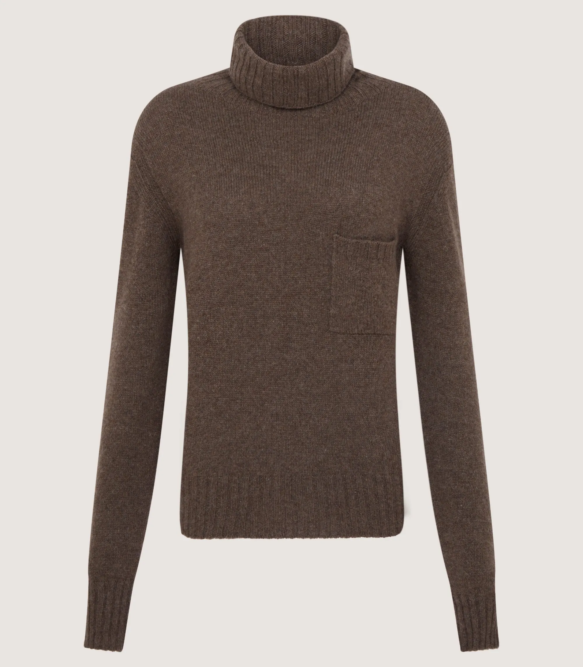 Crafted in Italy, this Cashmere Turtleneck Sweater with Chest Pocket combines all the elements you want from a seasonal piece. The high neck design and cashmere fabric choice warmth with exceptional comfort. This garment has a relaxed fit with a soft hand feel. It’s finished with a chest pocket, adding visual interest to its classic design.