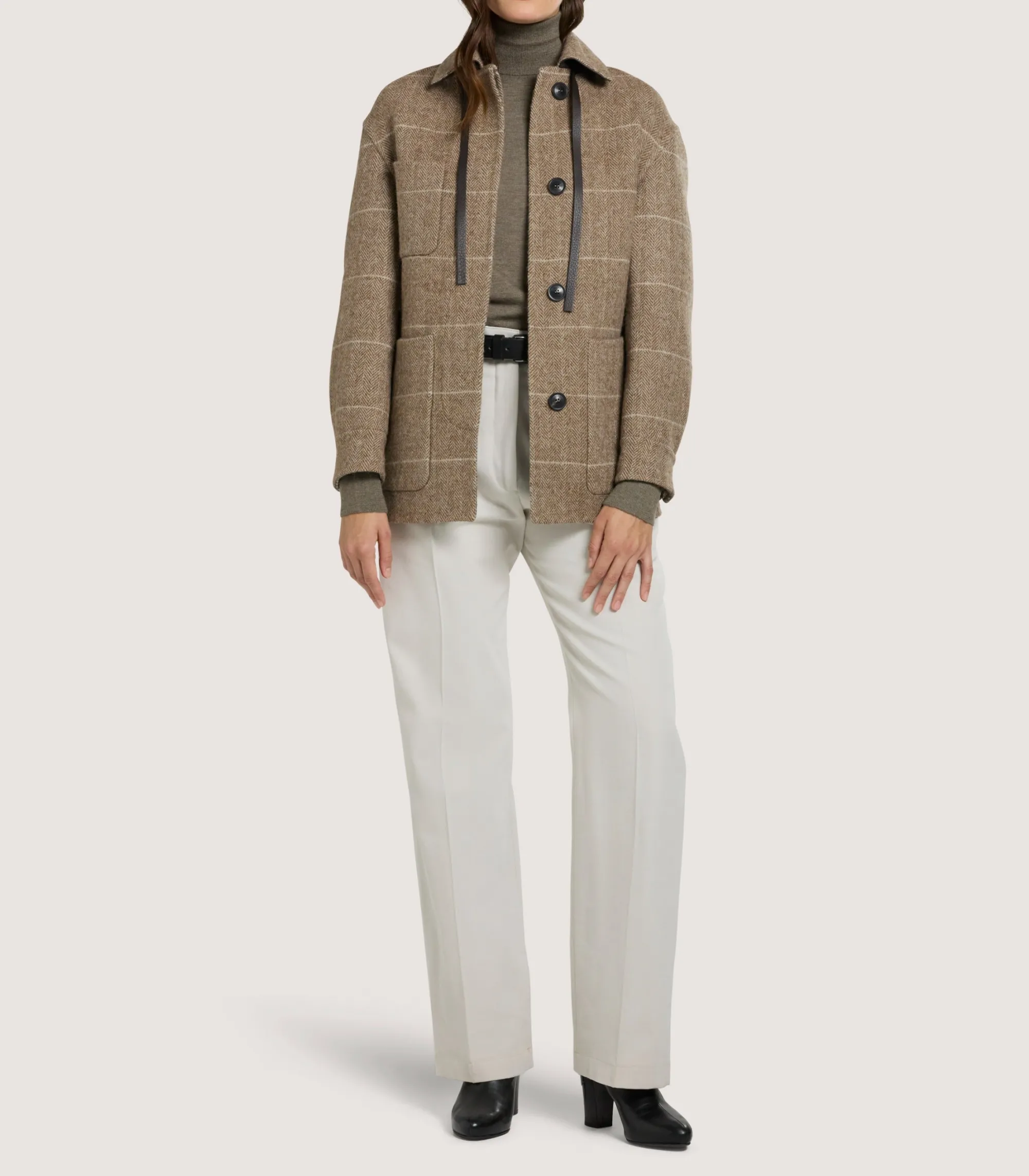 The Women’s Estate Coat marries together the appeal of traditional fieldwear with modern elegance. Crafted from splittable double-face fabric that was made in Scotland, this lady’s coat achieves both versatility and timeless style. The flattering silhouette is created through the cocoon shape with a length that falls just below the hip.