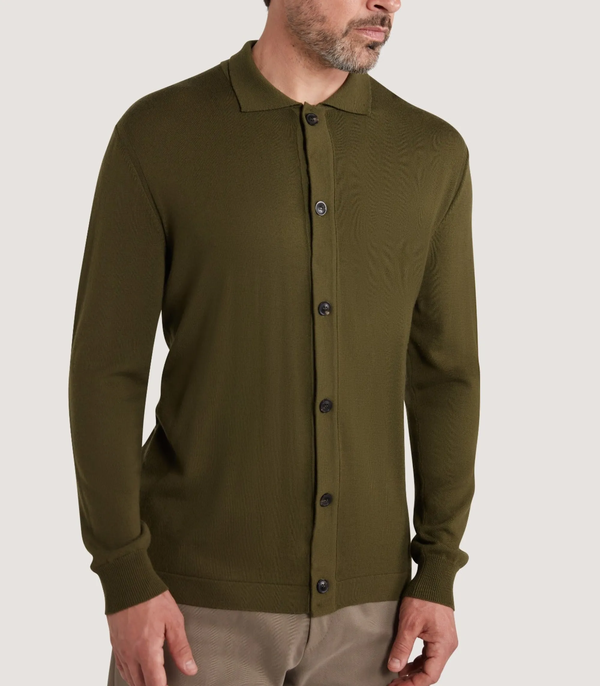 This long-sleeved polo shirt has a lightweight construction with a soft hand-feel. Its rich green colouring ensures it’s both versatile for styling and universally flattering. It’s finished with signature detailing at the armhole and shoulder.