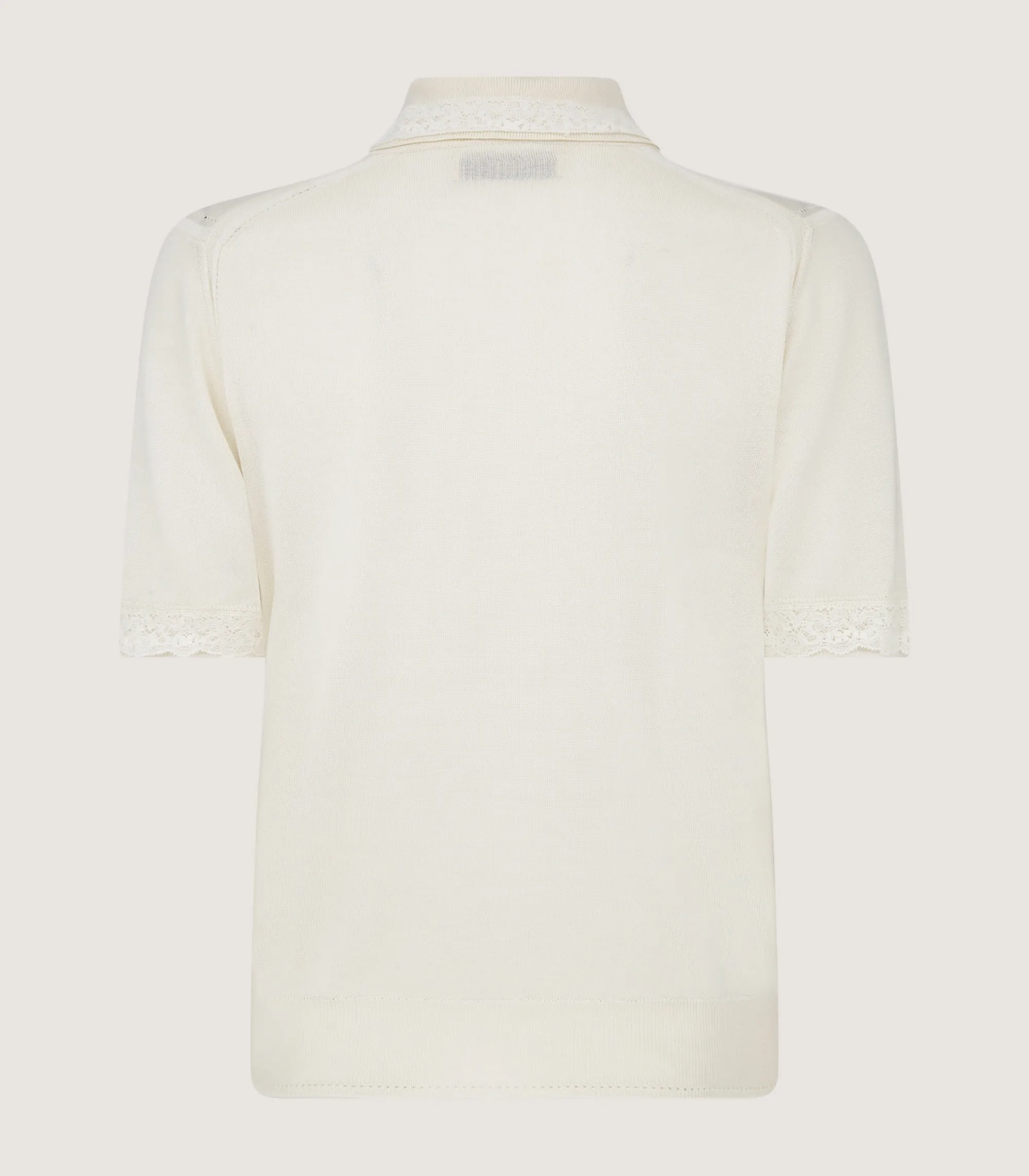 A feminine take on a classic polo shirt, this garment is made from soft and lightweight silk. It has lace trim details and a tie at the neck.
