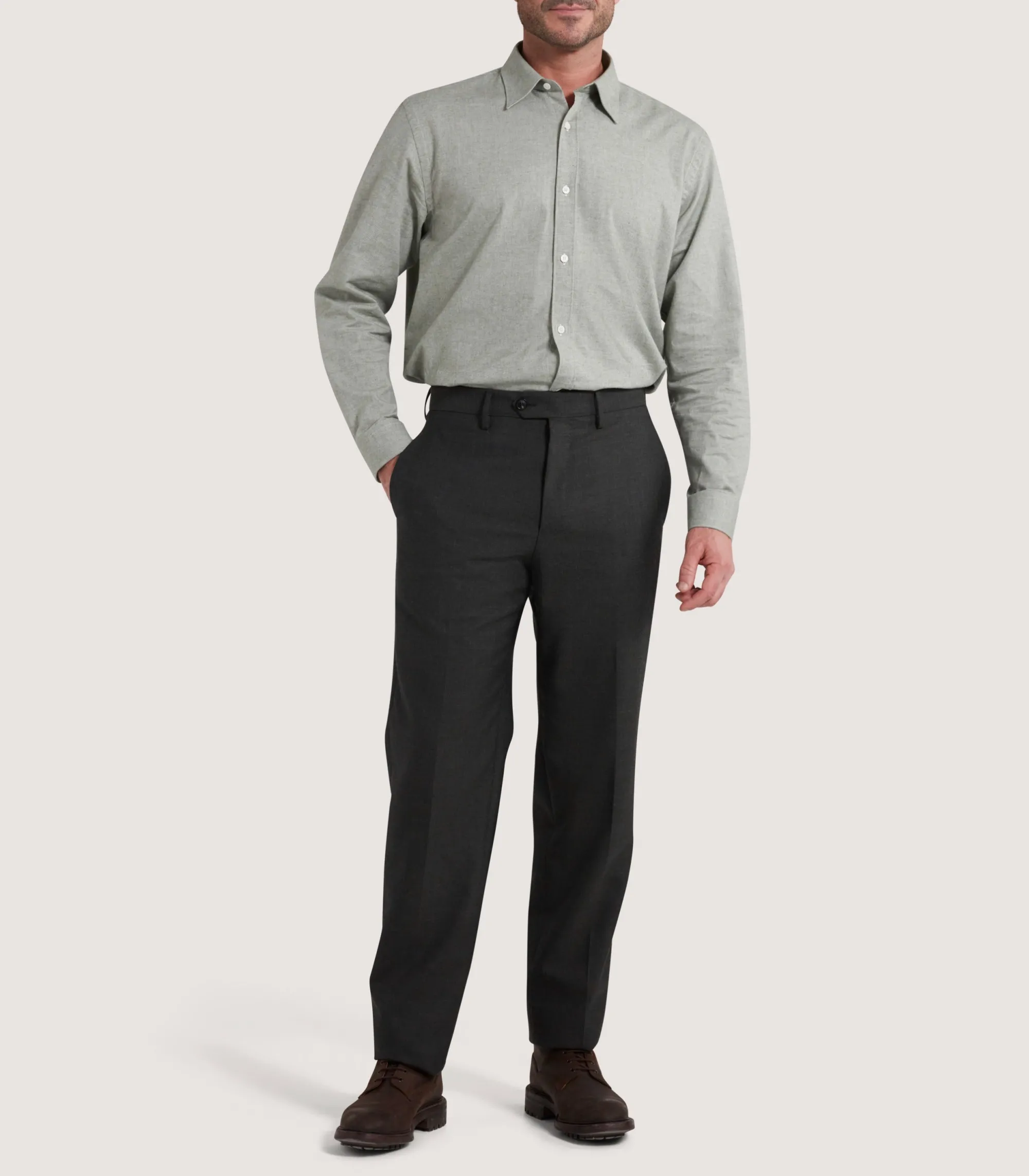 This flannel tweed shirt has a classic fit with the distinctive Purdey red thread on the lowest buttonhole. Available in a sage green, it’s a versatile wardrobe staple for the new season.