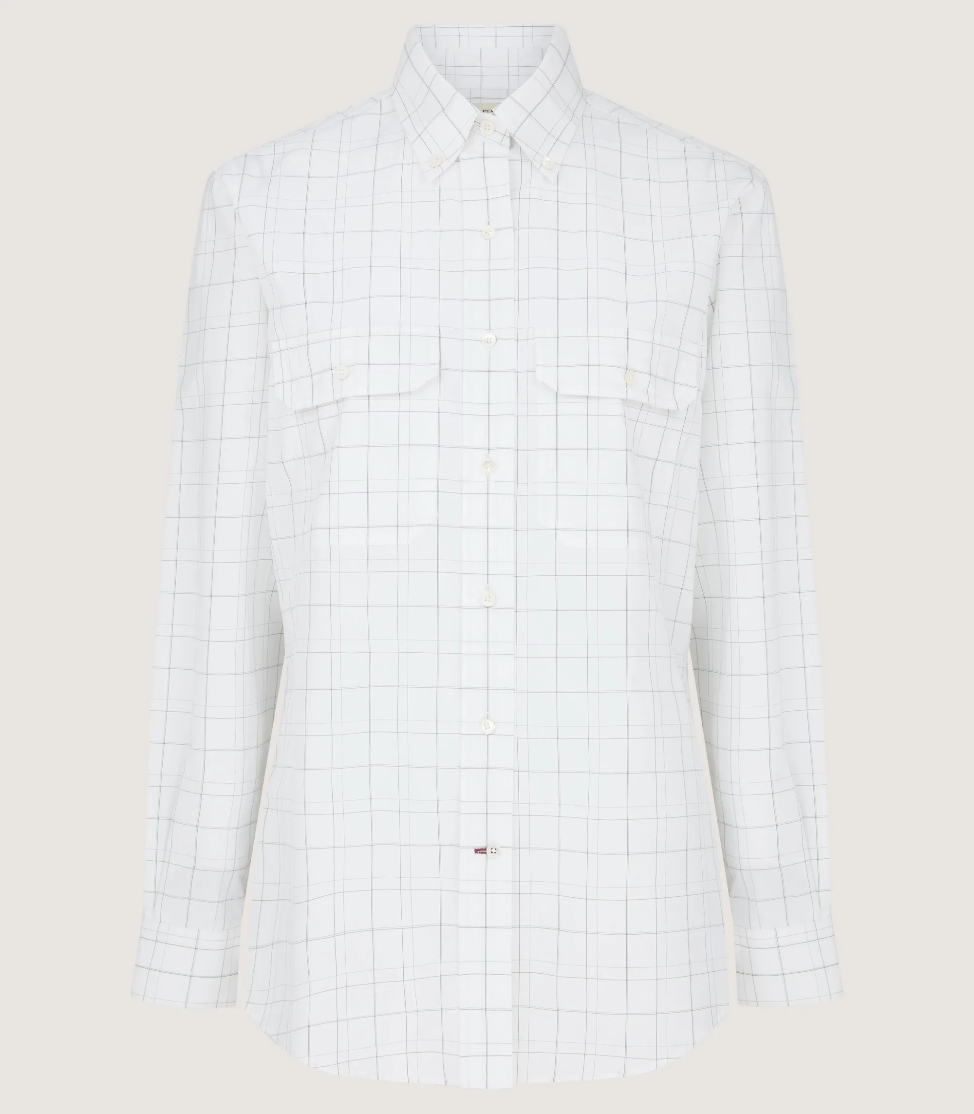 This windowpane check shirt was based on the classic Purdey button-down shirt. The two patch pockets give a utilitarian feel. It’s finished with the distinctive Purdey red threat on the lowest buttonhole.