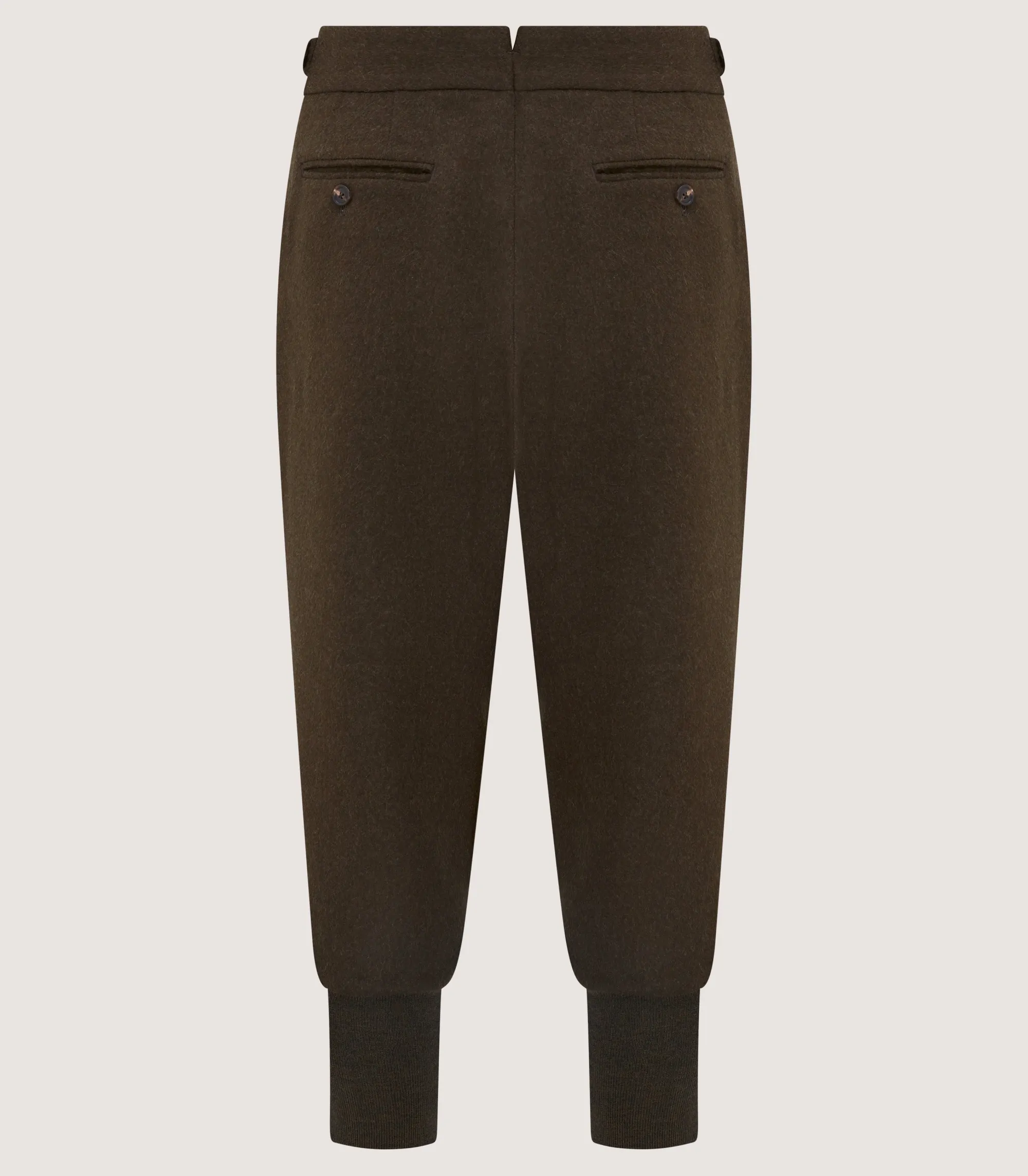 Alpaca wool has a cashmere-like softness and is quick-drying, making it an excellent choice for fieldwear fabrication. These breeks were made in Portugal from a blend of wool and alpaca wool. They are fully lined with a single layer Merino knitted cuff for extra comfort.