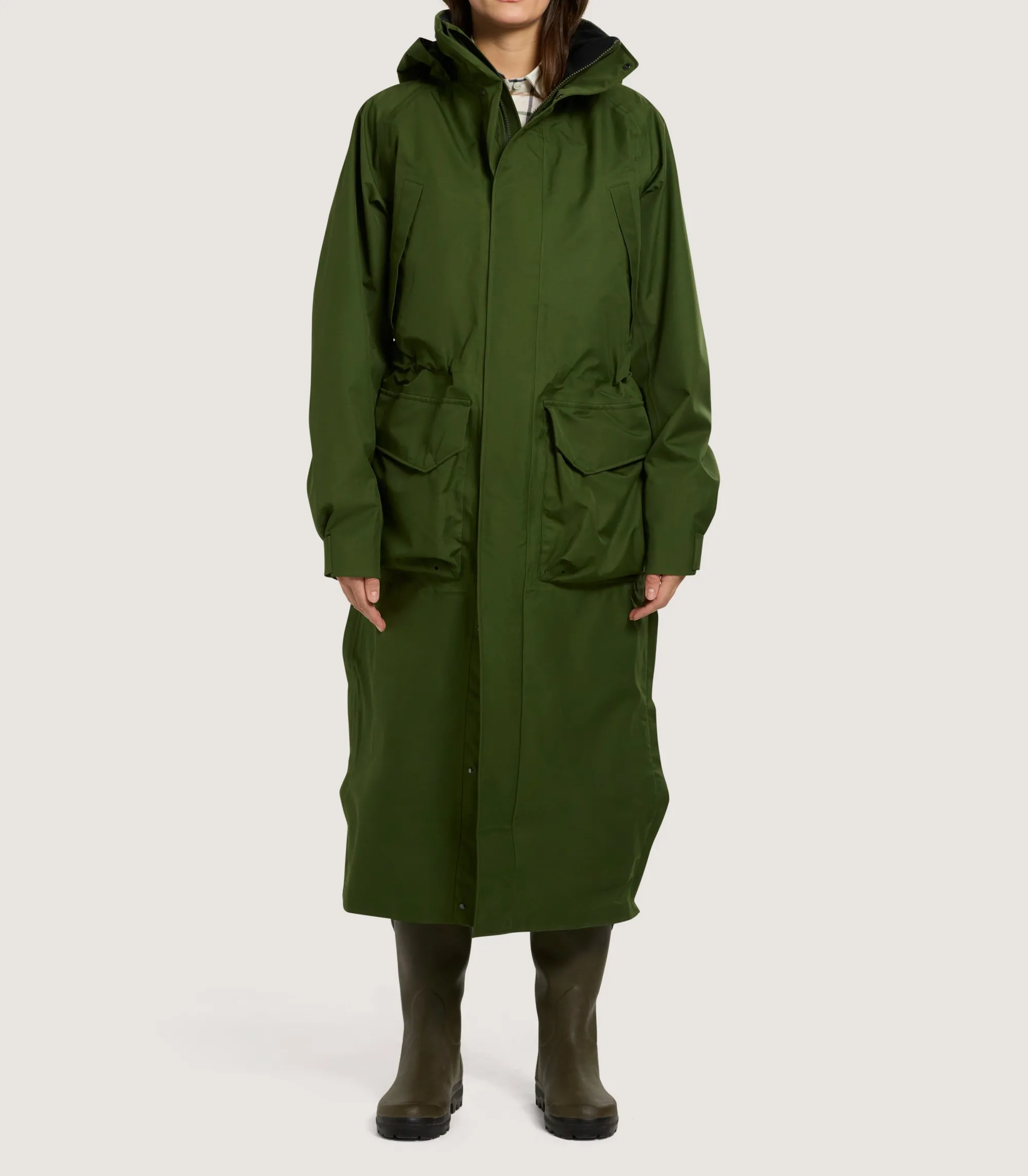 Continuing on from the iconic Vatersay cape comes a significantly upgraded version. This unisex sporting cape was made to withstand even the wettest of conditions. It’s a high-functioning kitbag essential for the serious sporter and novice alike. Every element of this sporting cape has been constructed with your performance in mind. There are three weather-proof layers, a detachable hood that can be packed away and double storm flaps. For added comfort and wearability in tough weather, we’ve added fleece-lined hand warmer pockets as well as made it full length so it sits over the top of a wellington. There are two-way zips so that the cape has convenient access to your trousers beneath. Its design features include a two-way centre front zip, an internal chest pocket, adjustable velcro cuffs, external cartridge pockets with retainer straps on both sides and a cinched waist to give it a flattering shape. The unisex Vatersay sporting cape is available in sizes XXS to XXXXL.