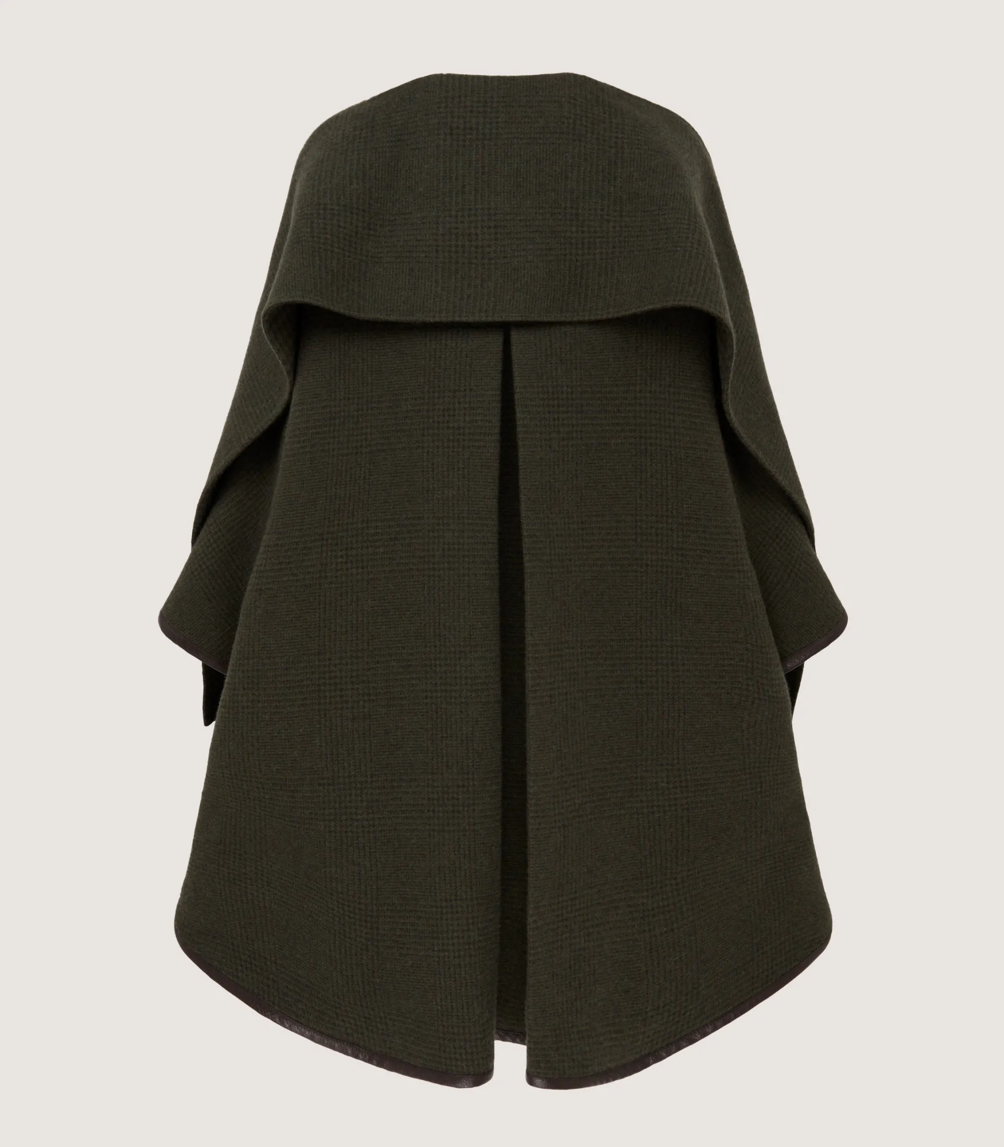 Enjoy the best of two styles with the Women’s Scarf Cape. The Glen check exterior is complemented with a contrasting Shepherd check interior. It’s made from a wool cashmere blend and is finished at the hem with a leather binding.