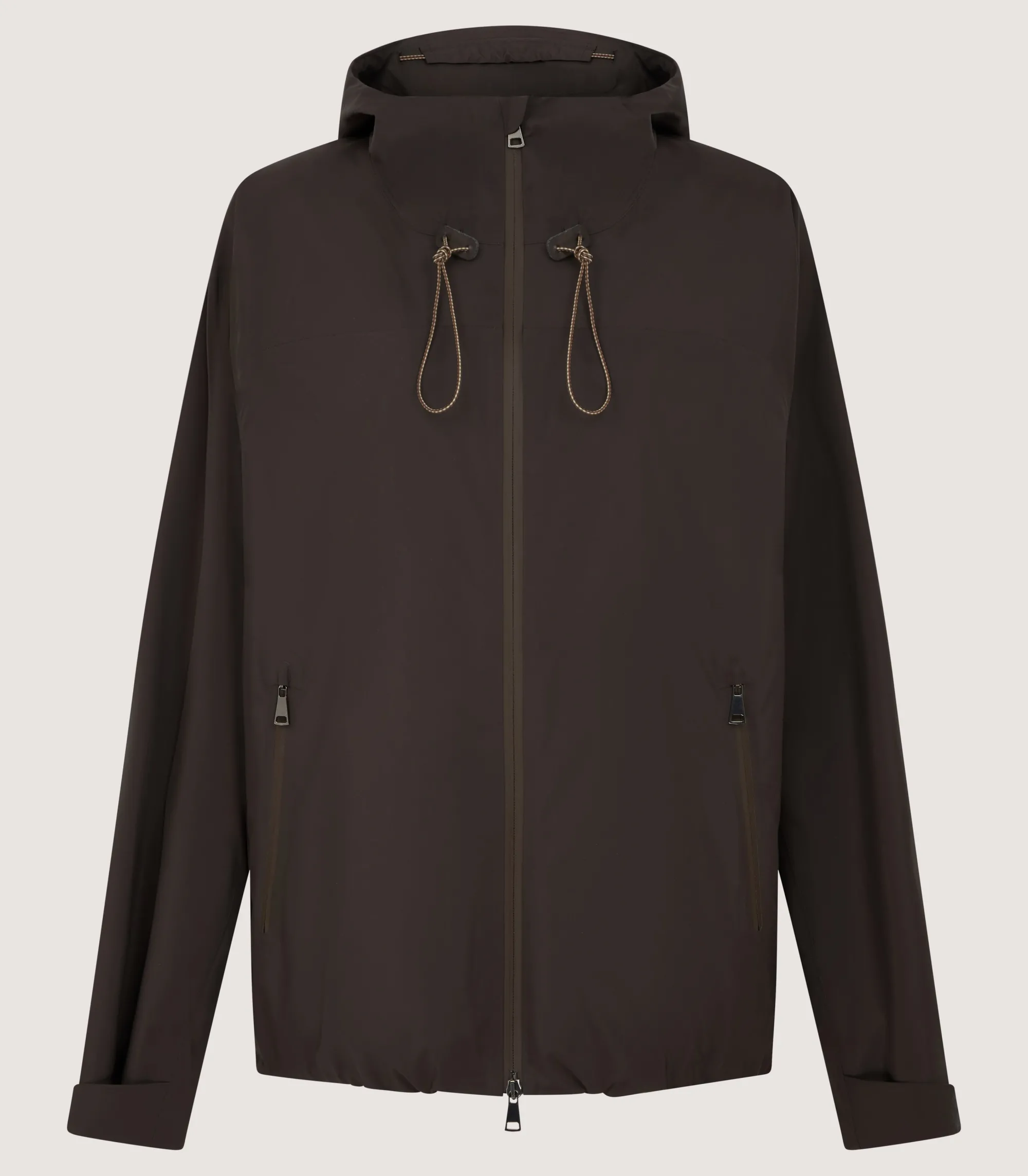 A sporting jacket that can be worn every day, this garment was made in Portugal from a lightweight waterproof fabric. A stylish Purdey wordmark is printed on the chest with embroidery on the back outer hanging loop. As a final detail, it has a carabiner clip for easy carrying.