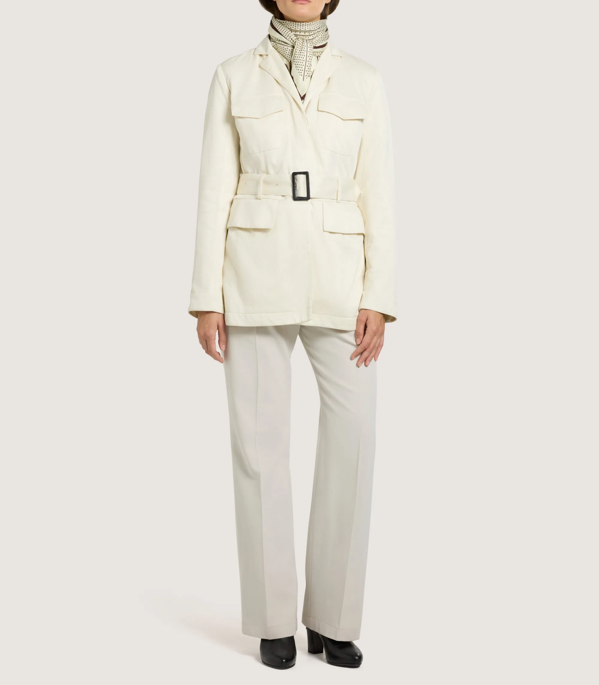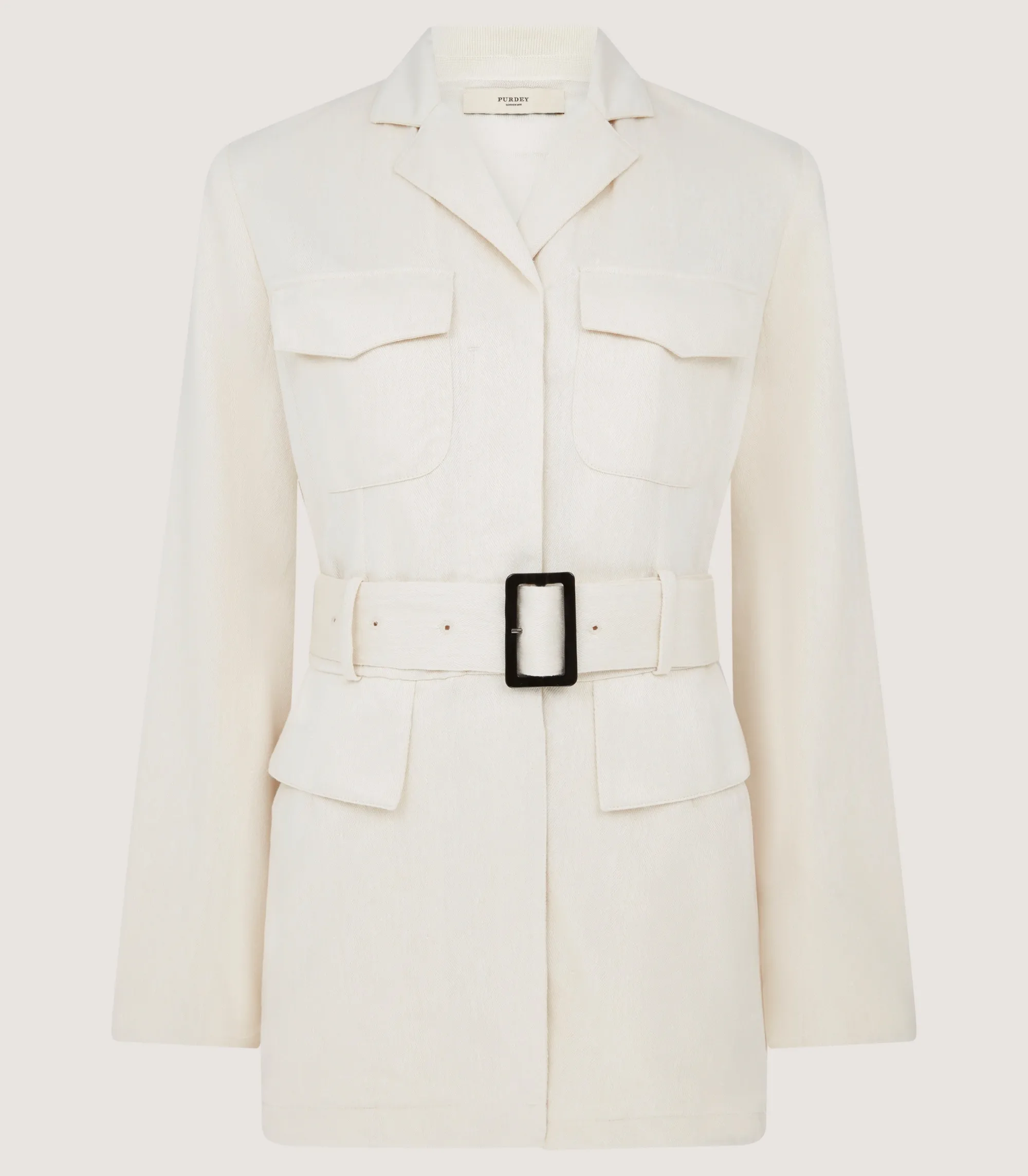This Wilton Jacket is a summer alternative to the classic Purdey Field Jacket. It’s a four-pocket jacket with a tailored collar and lapel, the belt allows you to nip in the waist. The linen cotton fabric blend has a subtle herringbone pattern.