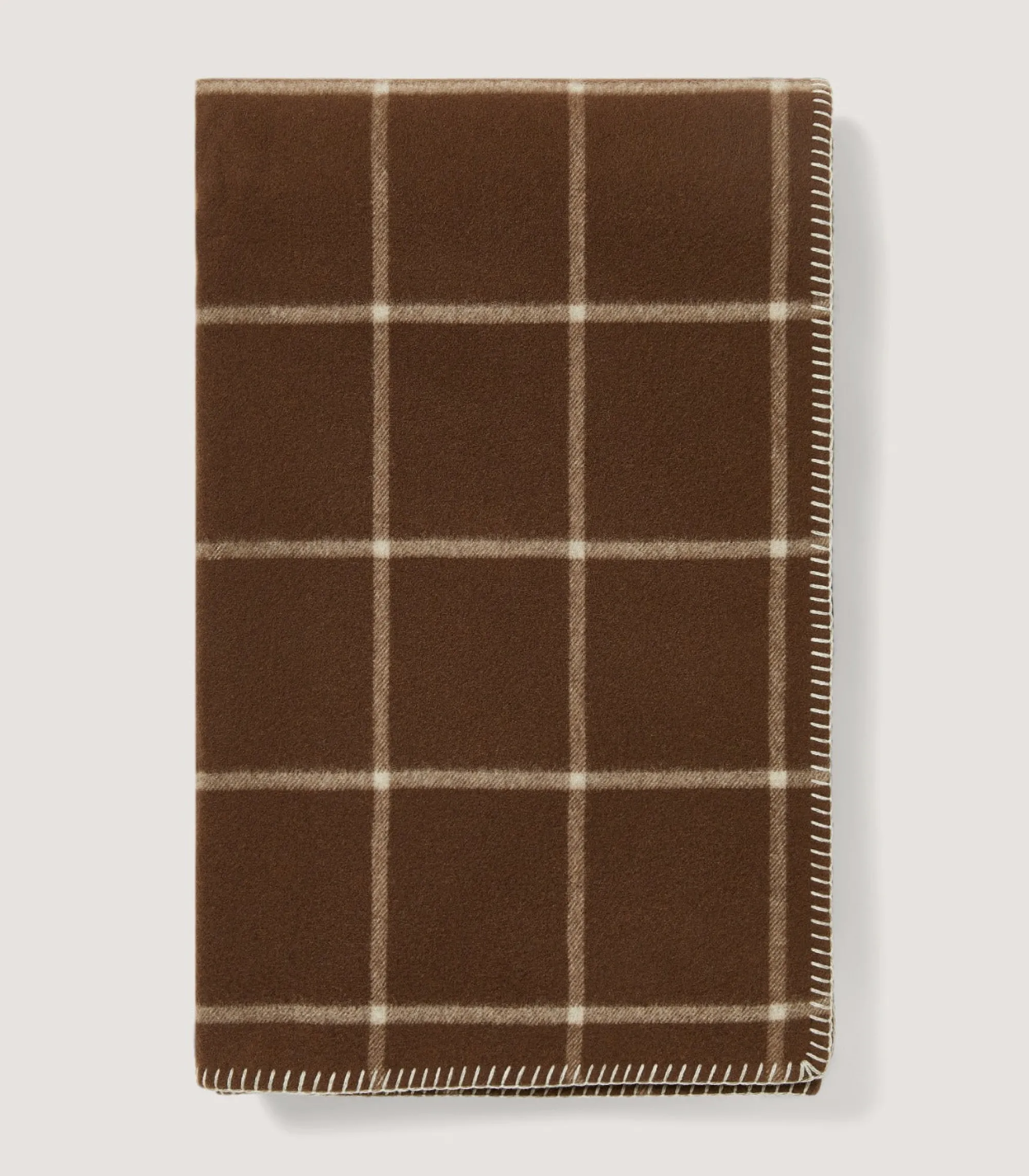 This luxurious blanket is crafted from a double face splitable wool cashmere silk blend fabrication. Patterned on one side with a windowpane check and and a plain reverse it provides two very different looks in the home. It is finished with blanket stitch edges. In the range we also offer a matching cushion.