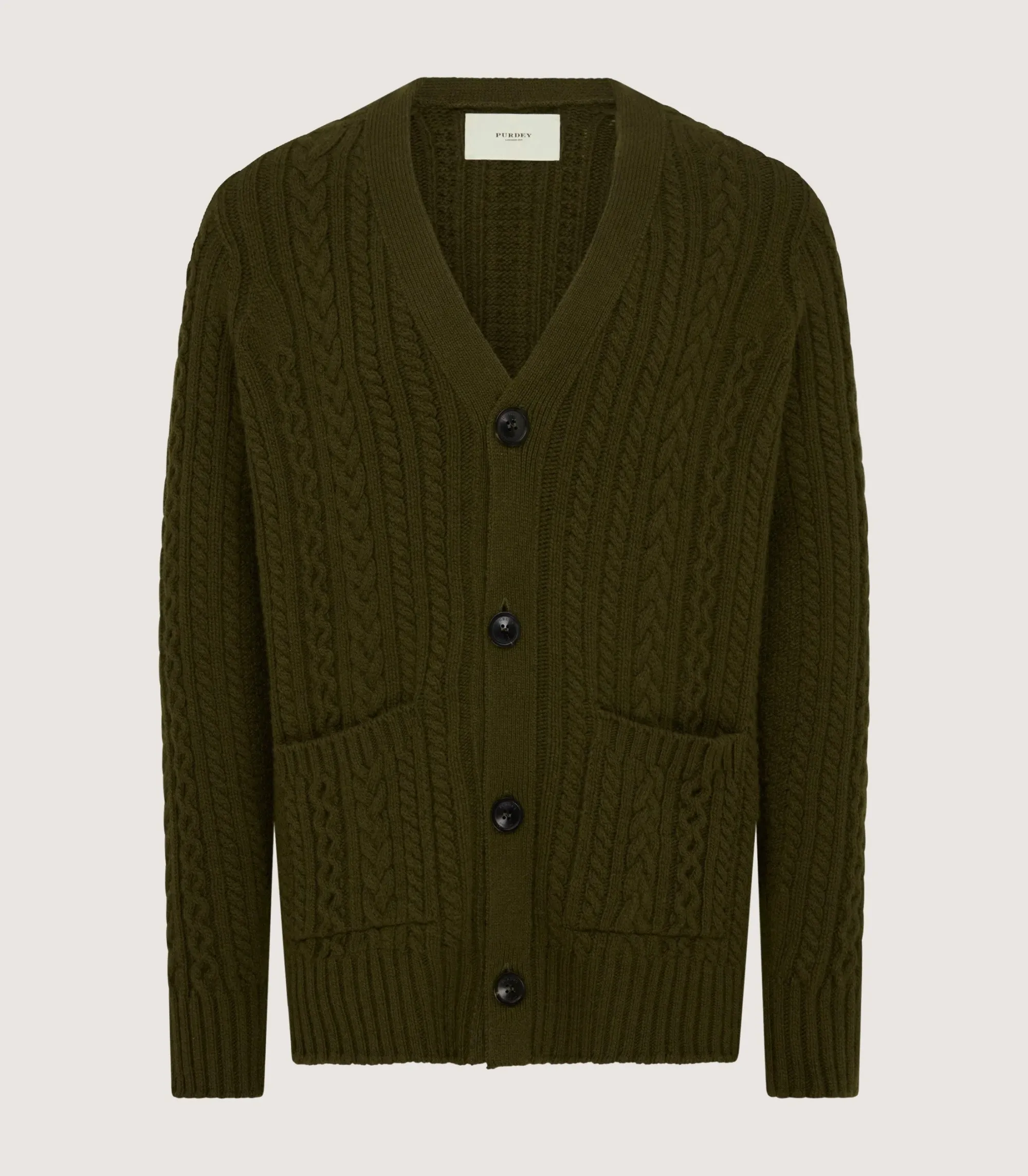 Be the first to review “Knitwear|Purdey Men’s Cashmere Cable And Rib V Neck Cardigan In Military” Cancel reply