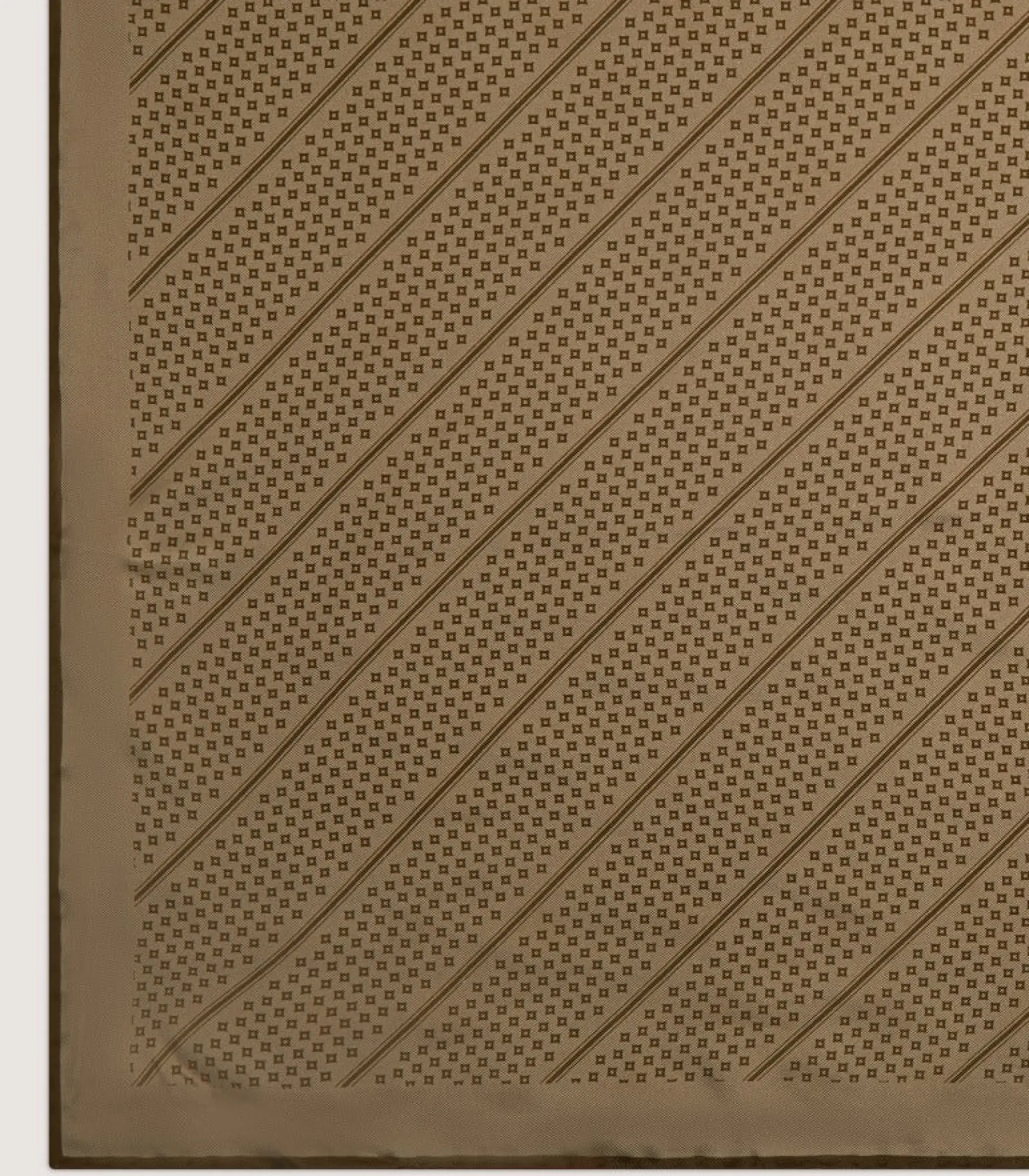 The subtle pattern of this silk scarf is designed to complement any outfit it’s paired with. It can be worn in a variety of ways including around the neck, waist or as a headscarf.