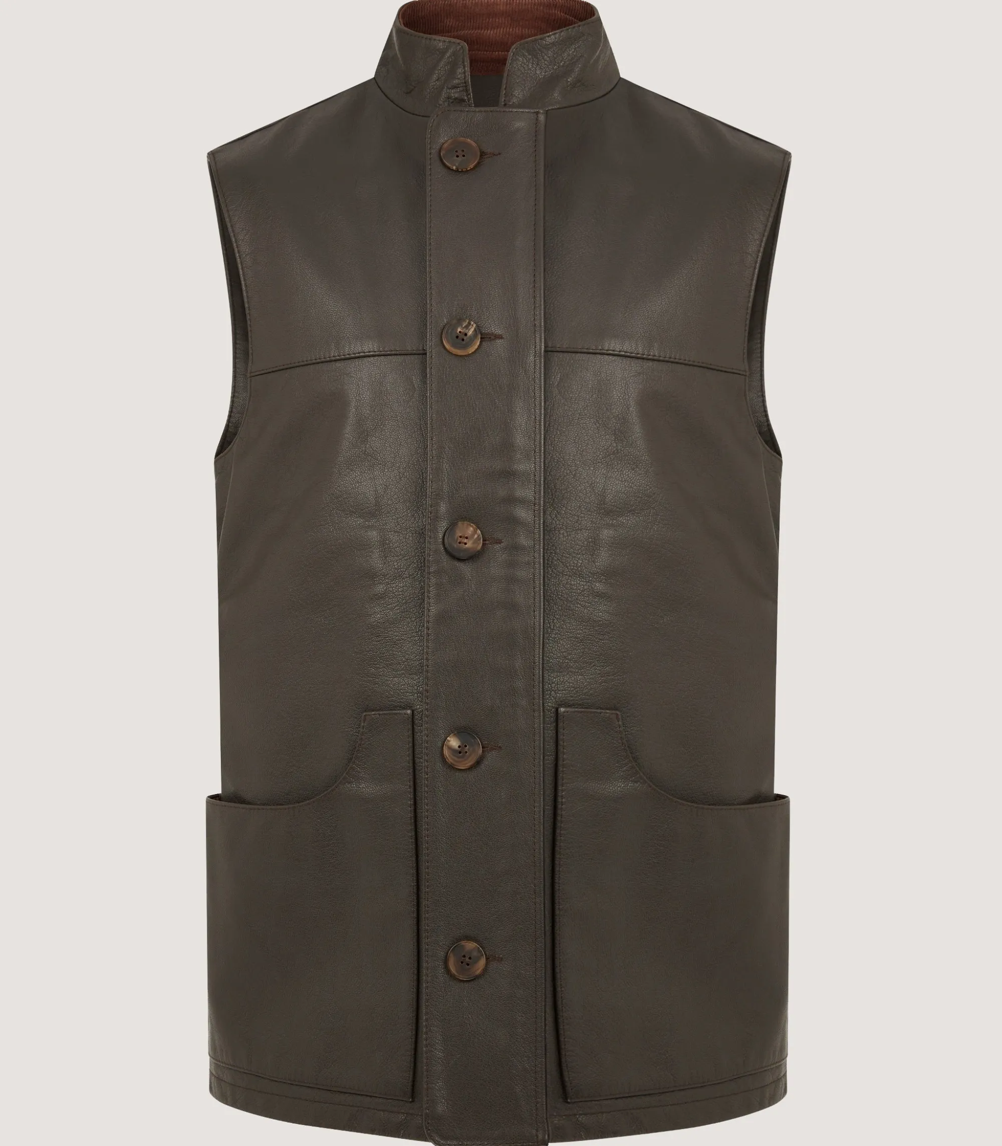Sporting Vests & Gilets|Purdey Men’s High Collar Leather Sporting Vest In Brown