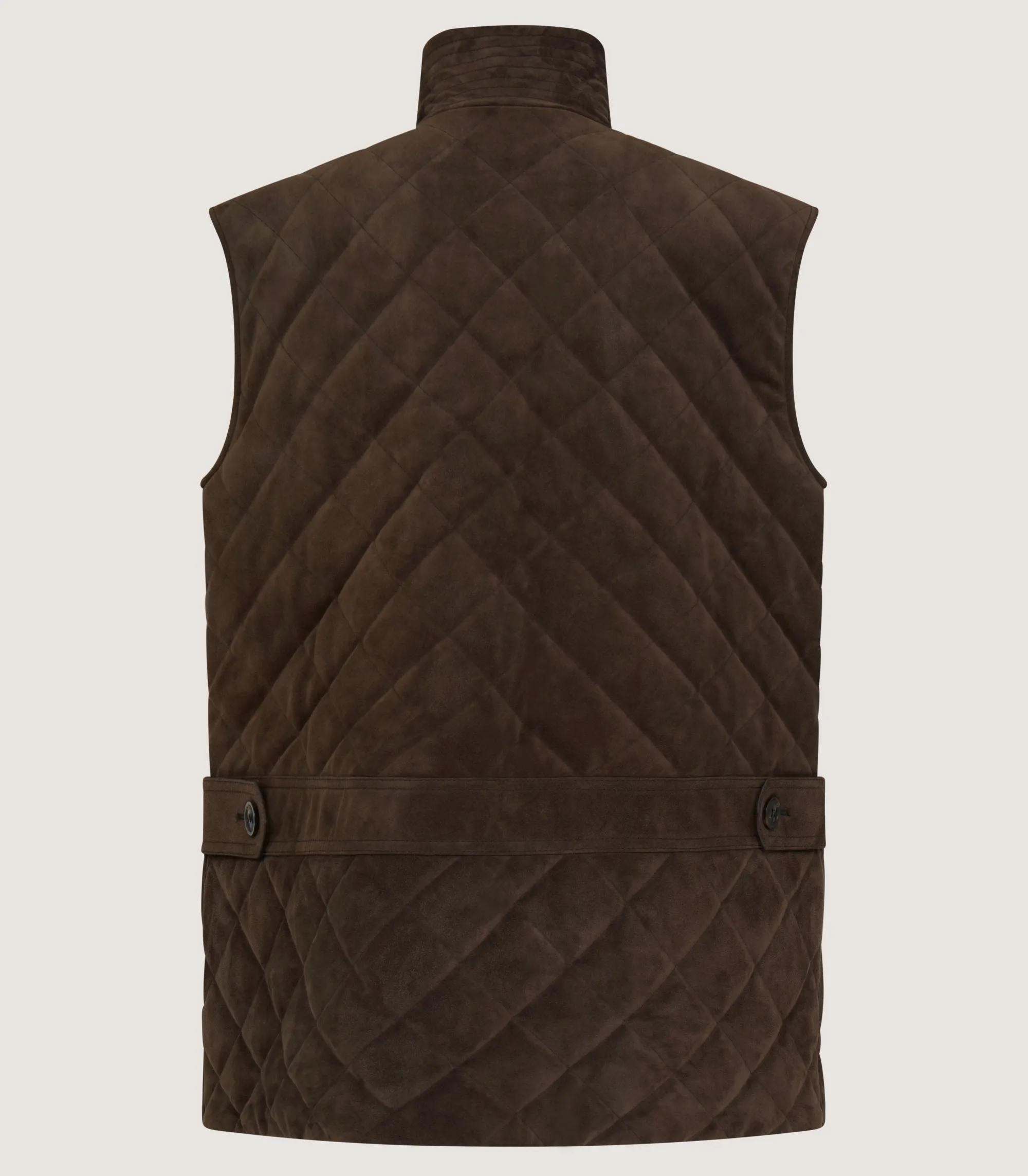 This gilet comes in deep, chocolate-brown walnut — a handsome colouring that easily transitions between city and country. It has a diamond effect stitching throughout the body. Padded with wool wadding, it provides additional warmth for layering.