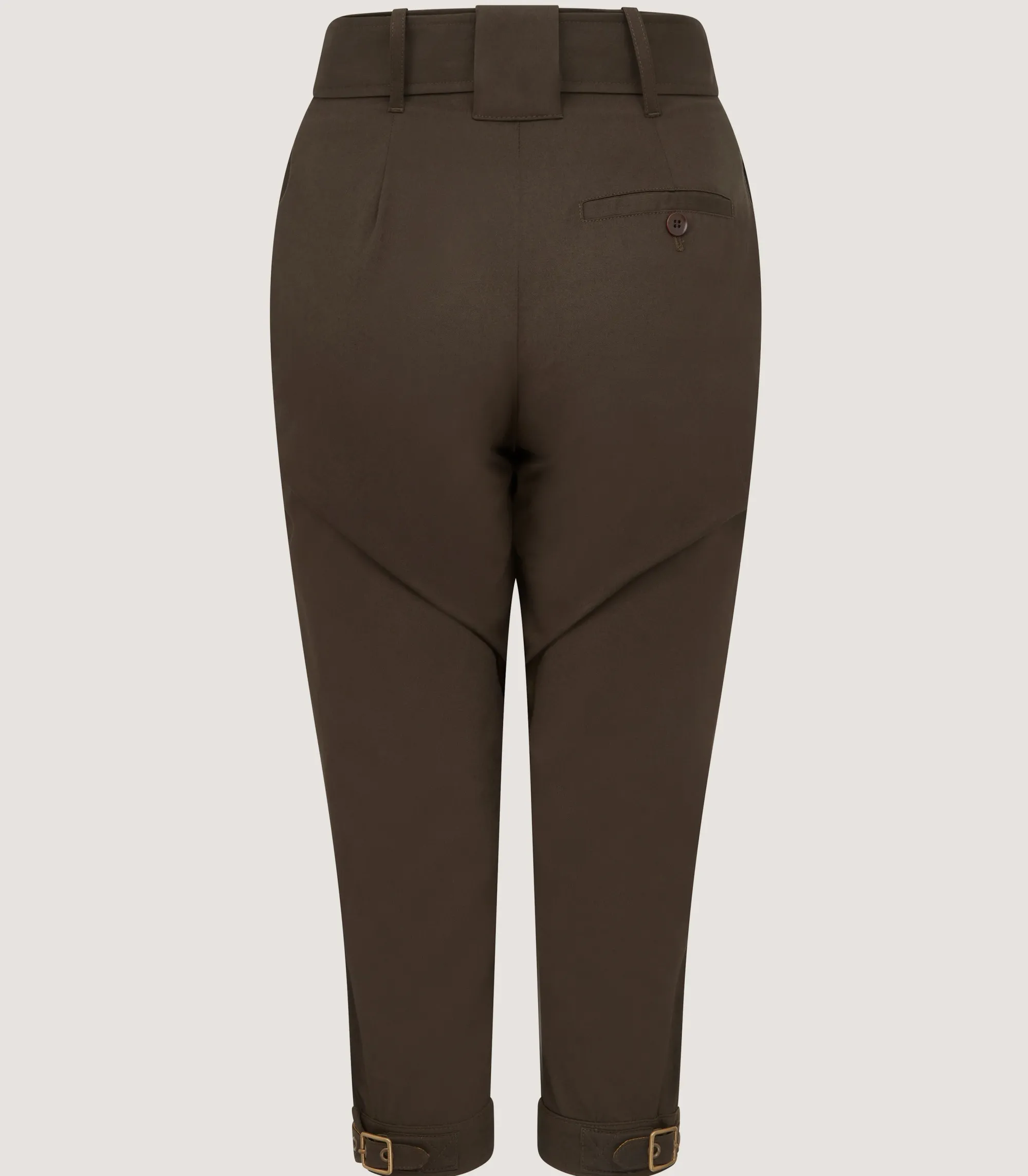 After extensive field testing, these breeks have been reshaped with a slightly slimmer fit, and are cut from lightweight cotton with a hint of stretch for comfort and ease of movement on the grouse moor. The higher waist creates a flattering shape, and incorporates a belt with leather buckle as well as additional belt loops if required. The legs are finished with buckle cuffs to complete the traditional look.